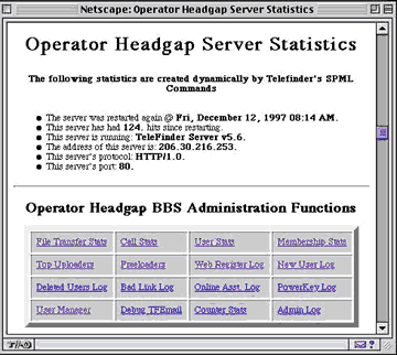 You may test them now using sysopstats.spml if you are using your server to preview this file. Telefinder spml commands must be served from a Telefinder Server to work properly. If you set up your realm correctly it will prompt you for your login name and password.