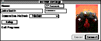 See the "Setting up TeleFinder" section if you need instructions for setting the telephone number or choosing a modem configuration.TeleFinder dials the number using your modem and then waits for the BBS Server to answer your call. TeleFinder will automatically make repeated attempts to connect to a busy line. Click in the Cancel button to stop.