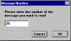 Click in the "Right Arrow" button to view new messages by post date. Click in the "Left Arrow" button to view previous messages in descending order by date. The current message number is shown between the arrows.Selecting By Number
