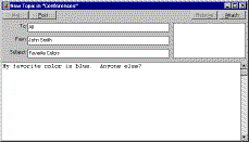 · Then select the "Create New Topic" from the Mail menu. This will open a message reply window as shown below.· Address the message to a specific user, or generically to "ALL."· Enter a subject name in the subject text box. The name you enter becomes the name of the topic icon in the conference you are creating the topic in.